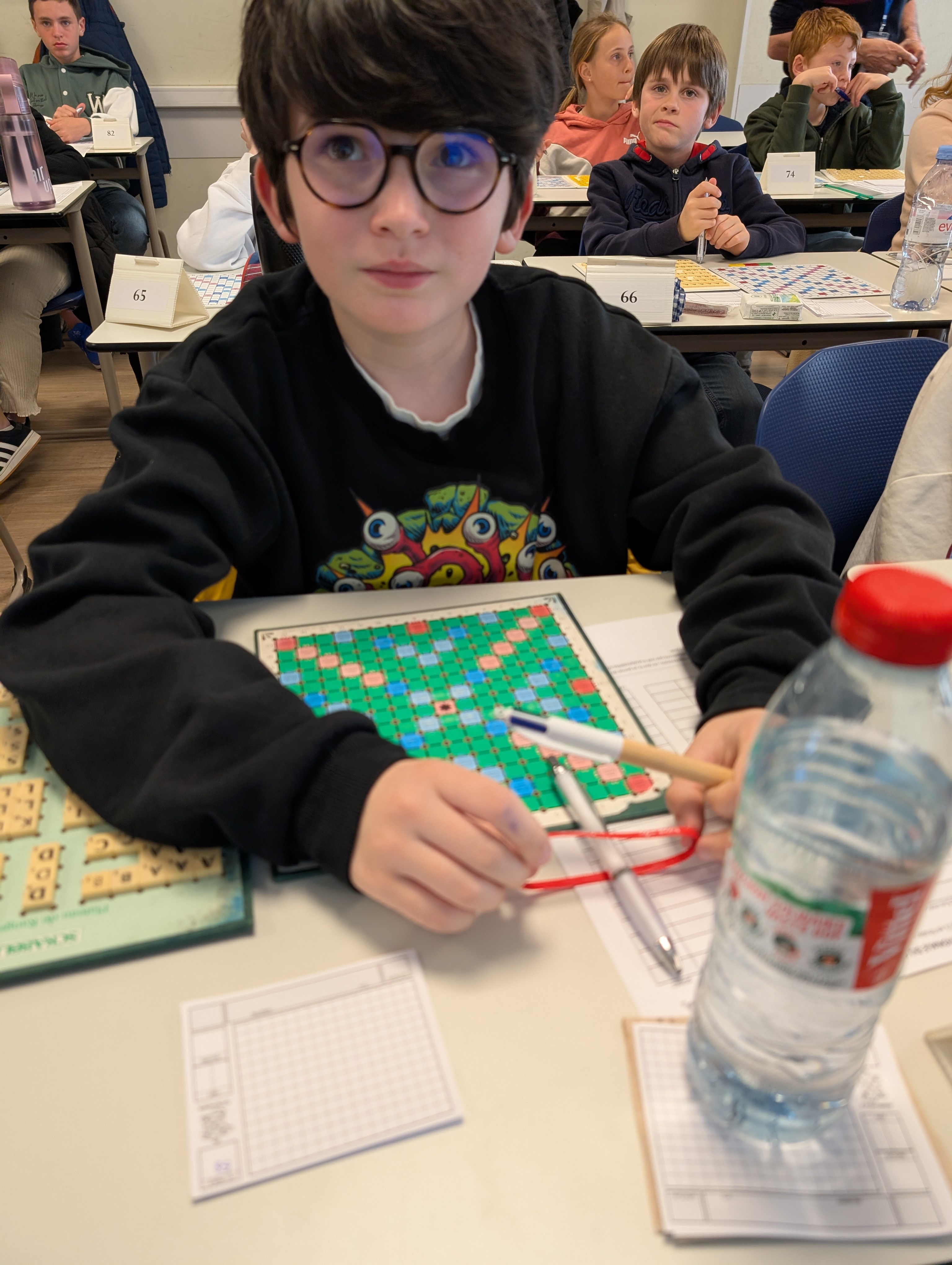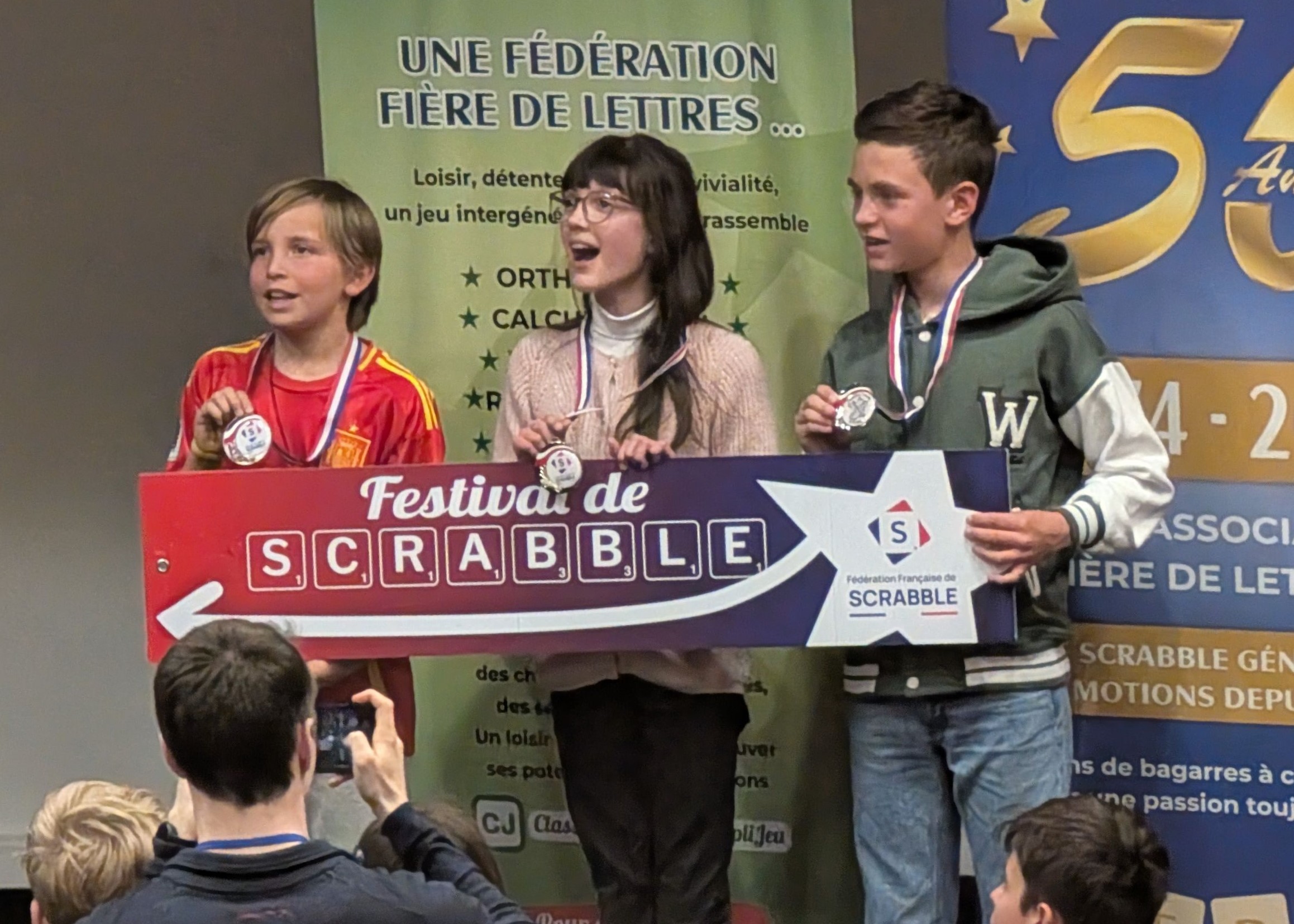 Maël Haddadi,(20ème, 787 points) champion départemental était un tout petit peu déçu : « Je termine 3ème de la première partie et je me rends compte trop tard d’une erreur sur un mot dans la seconde qui me coûte 80 points et une quatrième place. » Le mot de la fin à Maël Nicolas (16ème, 791 points) qui n’a pas encore 10 ans : « J’étais très content d’avoir pu participer à cette finale à Paris. J’étais un peu impressionné de voir autant de monde mais tout s’est très bien passé. Ça m’a donné envie de continuer le scrabble. » A n’en pas douter on entendra encore parler de ses trois jeunes joueurs dans le futur car ils comptent continuer !!