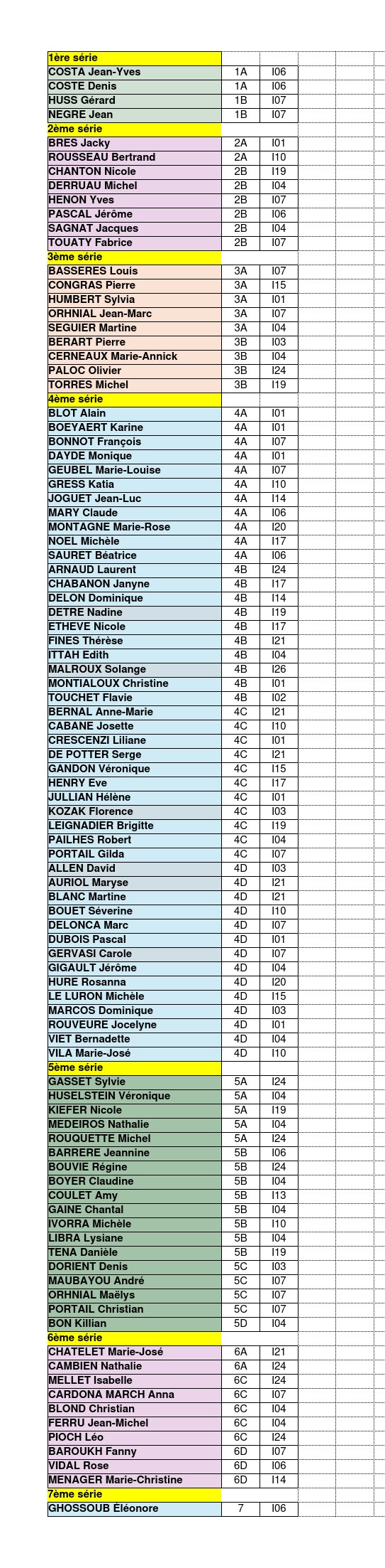 Suite à la parution des résultats officiels des séries 5,6,7, voici la liste des 79 joueurs du comité qualifiés pour les séries 1 à 7 en attendant les places qualificatives attribués au Comité qui seront attribuées lors du Championnat régional qui aura lieu le dimanche 15 février à Béziers.