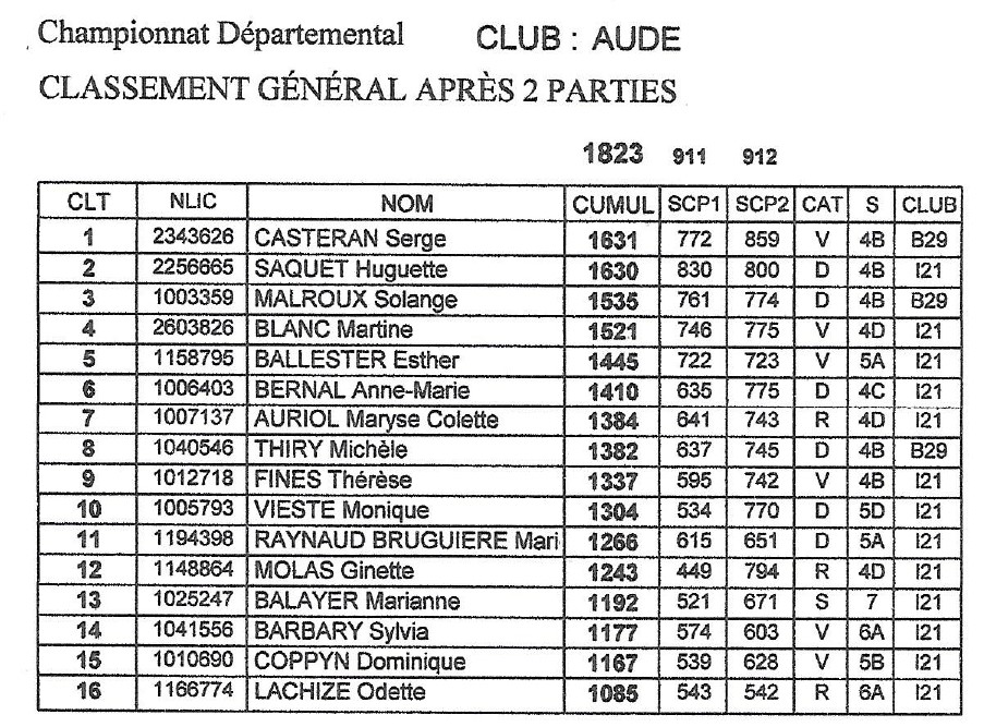 Samedi 17 juin avait lieu le Championnat départemental de l' Aude. Il a réuni 16 joueurs venus de Narbonne et de Limoux.