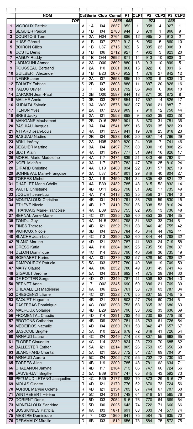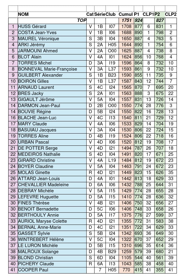 Le podium : 1er: Gérard HUSS (Perpignan) 2ème: Jean-Yves COSTA (Nîmes) 3ème: Véronique MAUREL (Montpellier) ( 3ème série !!! bel exploit)