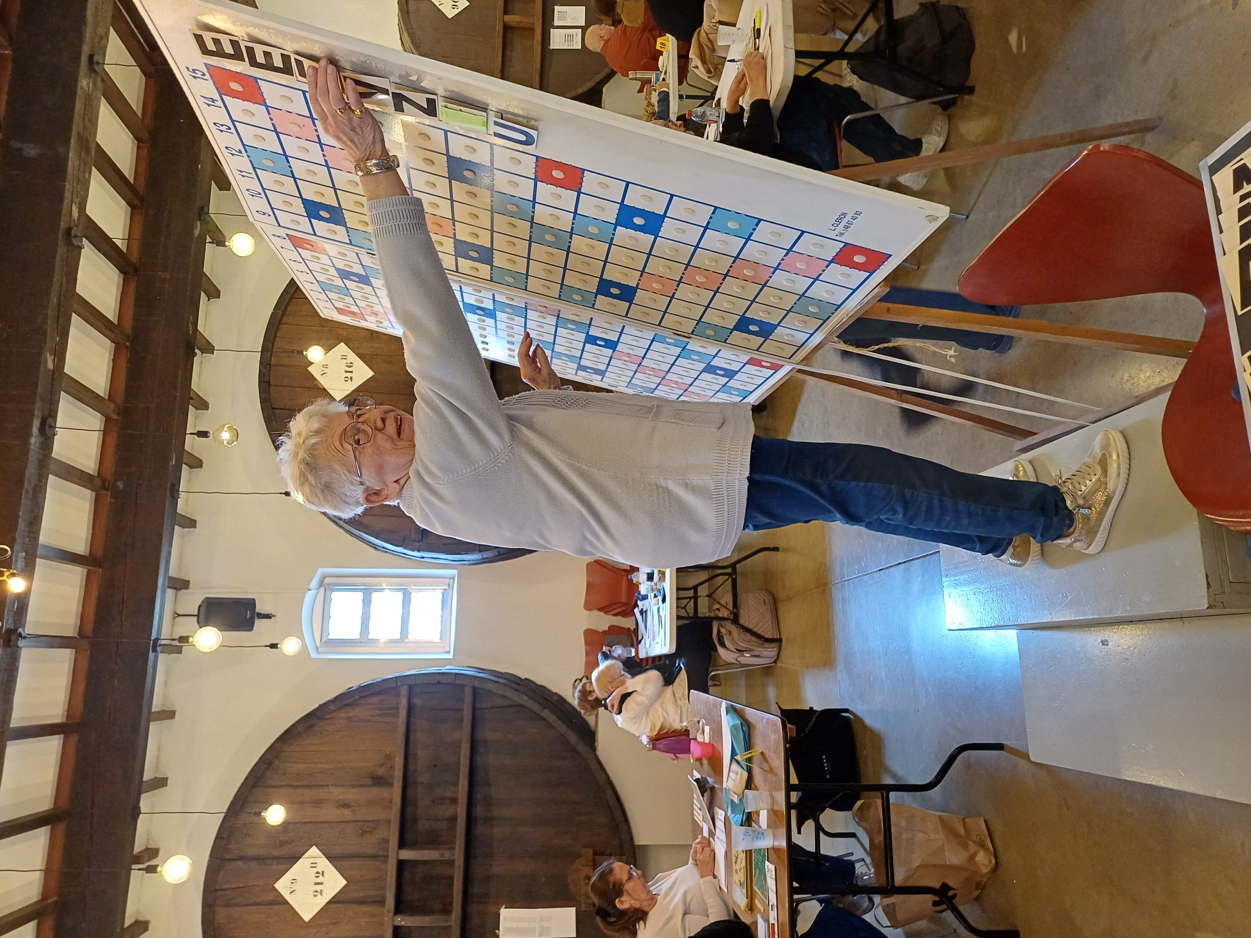 Ce sont sept arbitres et un tireur de partie, qui après les trois minutes de réflexion, énoncent la solution la meilleure. Une des joueuses explique : "Le plus important, ce n’est pas de trouver des mots très longs, mais de placer ses lettres de manière qu’elles rapportent le maximum de points. Non seulement au niveau des cases où on les dépose, mais en fonction aussi des mots qu’on crée en associant le mot qu’on pose à ceux qui sont en place. La stratégie est aussi importante sinon plus que le vocabulaire."