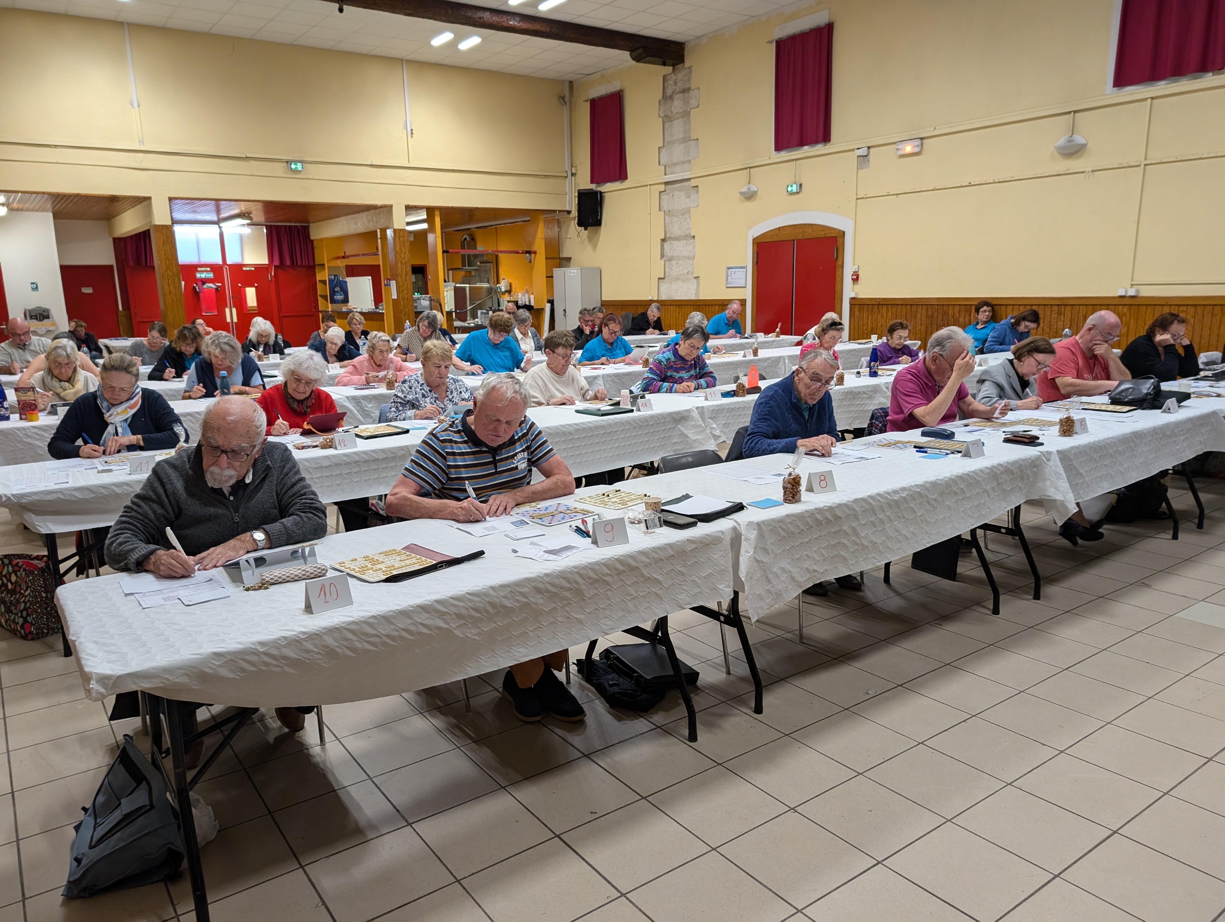 Ce sont près de 40 joueurs licenciés venus des clubs du département et même du Gard (Alès et Nîmes) qui ont bravé les intempéries et se sont affrontés pour le troisième tournoi officiel de Scrabble® organisé par le club de Montarnaud au profit du scrabble scolaire ce samedi 26 octobre.