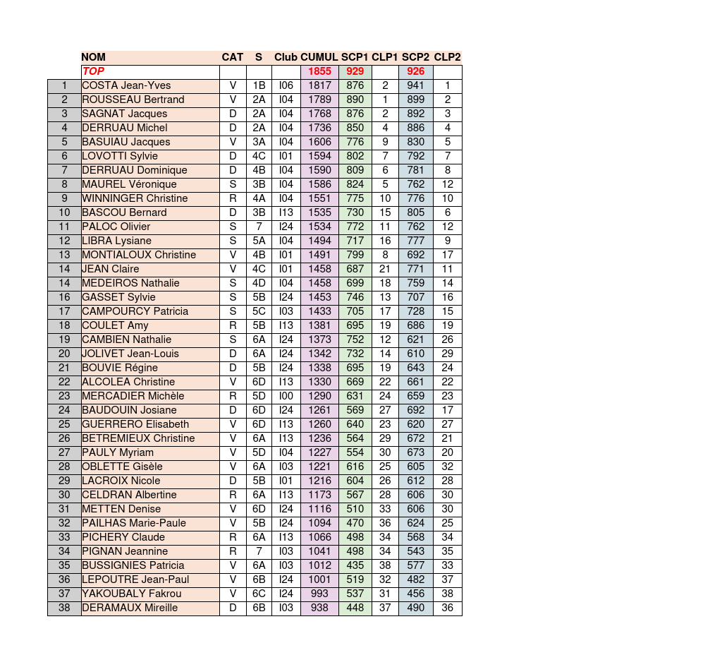 Les vainqueurs des séries: 4 : Sylvie LOVOTTI (6ème) (Alès), 5 : Lysiane LIBRA (Montpellier) (12ème) , 6: Nathalie CAMBIEN (Montarnaud) (19ème) 7: Olivier PALOC (Montarnaud) qui termine 11ème du tournoi !!! Une excellent recrue pour le club montarnéen !! Il était ravi de cette première expérience : «J’ai pris conscience de l’investissement de tous pour une telle journée et j’ai éprouvé un grand plaisir à découvrir un tournoi officiel."