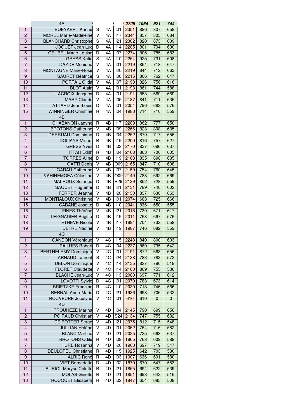 Voici les résultats des qualifications série 4 pour l'ensemble des centres du comité du dimanche 24 novembre :