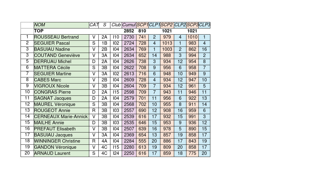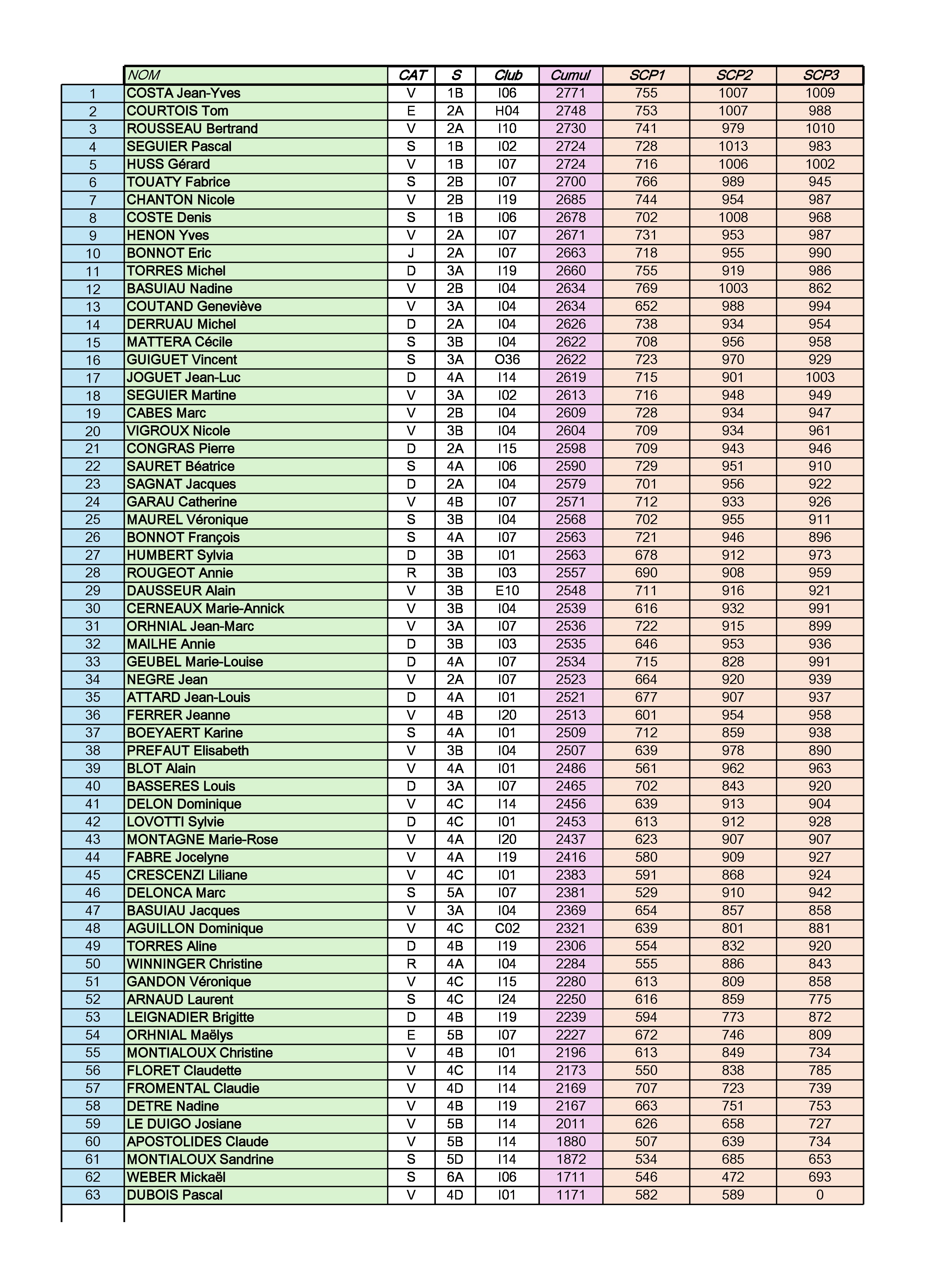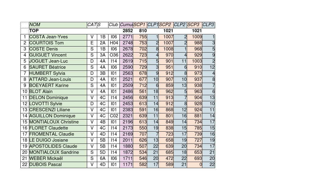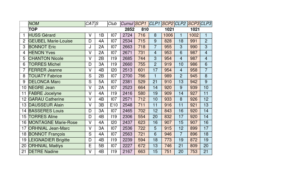 Voici les résultats des qualifications des Séries 1,2,3 qui ont eu lieu ce dimanche 13 octobre sur 3 sites : Alès, Montpellier et Perpignan. Par site et compilés :