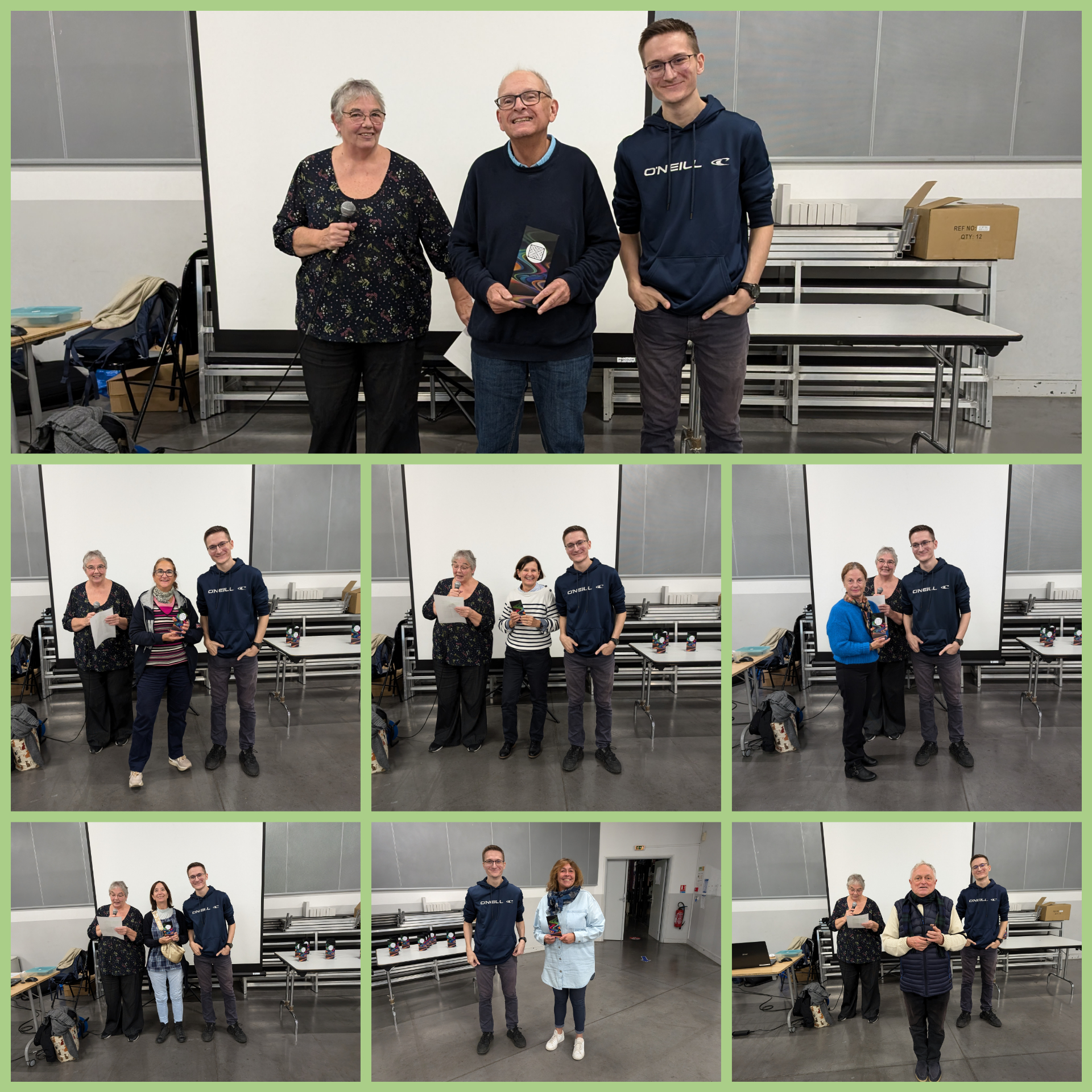 1ère série: Patrick VIGROUX (Montpellier); 2ème série: Nadine BASUIAU (Montpellier); 3ème série: Elisabeth PREFAUT (Montpellier, 2ème du tournoi) ; 4ème série: Nicole ETHEVE (Castelanu le Lez); 5ème série: Lysiane LIBRA (Montpellier); 6ème série : Nathalie CAMBIEN (Montarnaud) Vermeil : Jacques BASUIAU (Montpellier) Diamant Josette CABANE (Lattes) absente de la photo; Rubis Christine WINNINGER (Montpellier), absente de la photo.