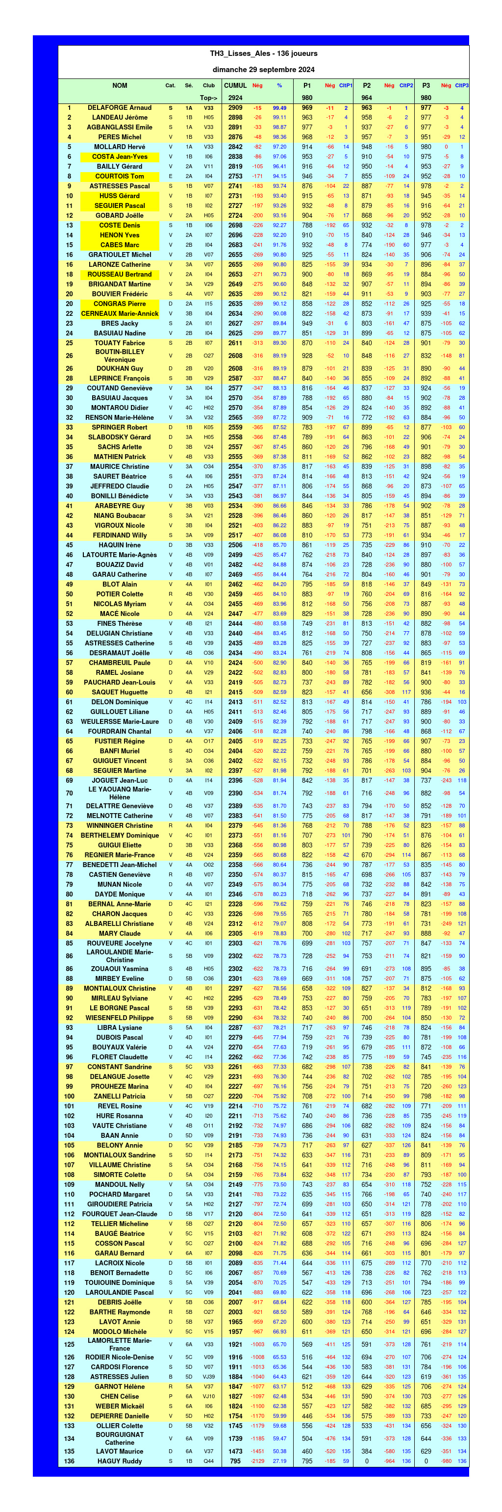 Dimanche ce ne sont pas moins de 136 joueurs qui se sont affrontés en duplex avec les Lisses. Six comités et 39 clubs représentés !!