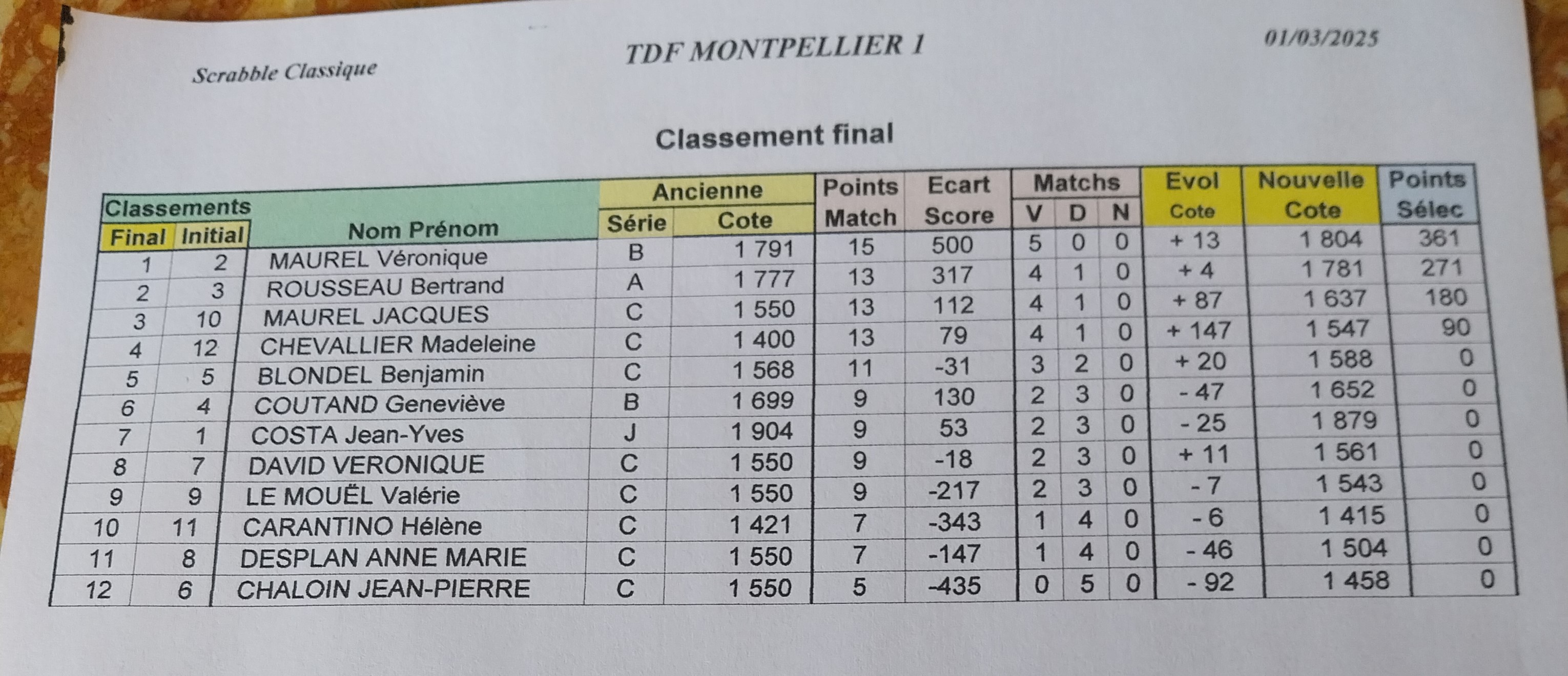 Voici les résultats de l'étape de Montpellier du tour de France classique du samedi 1er mars