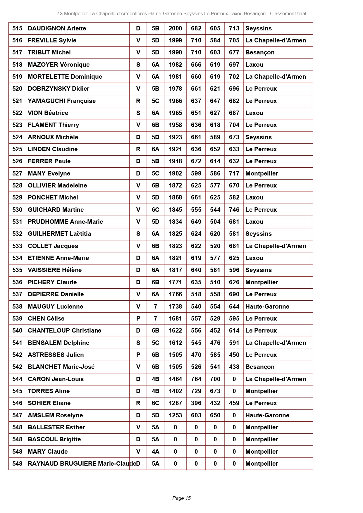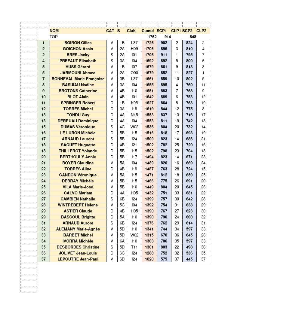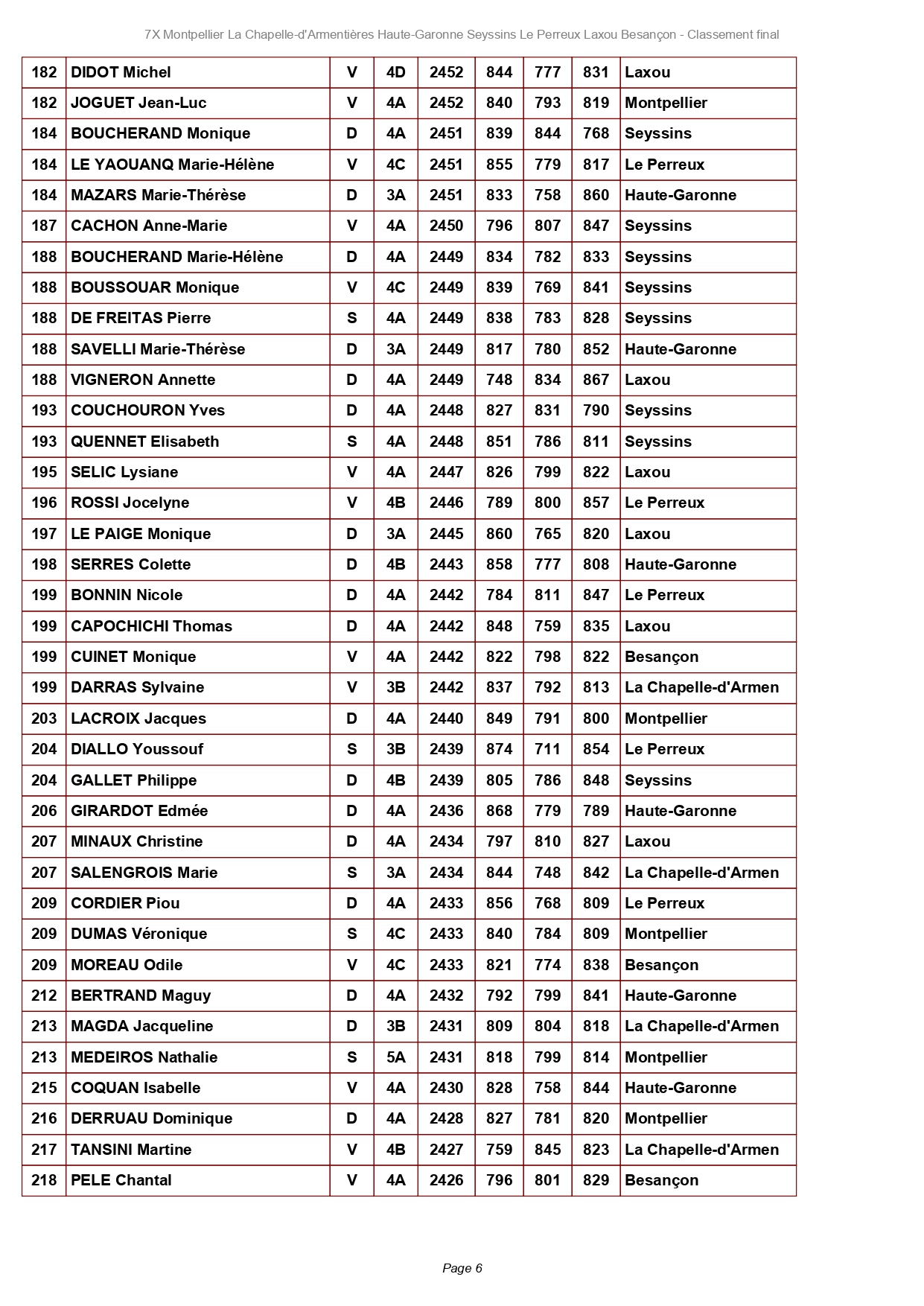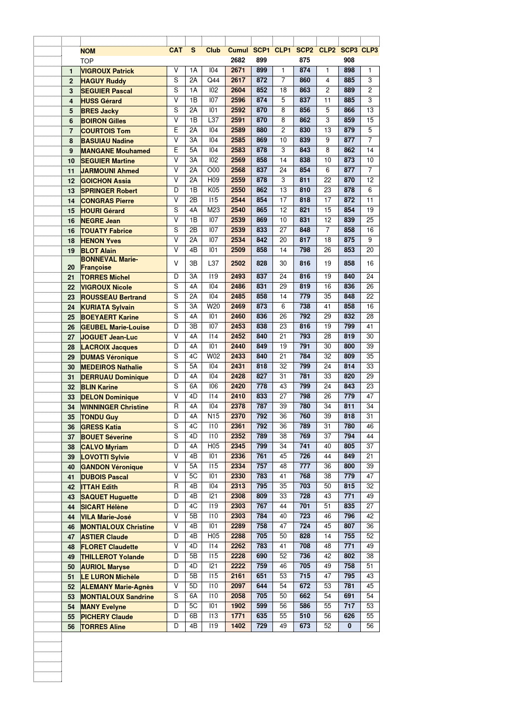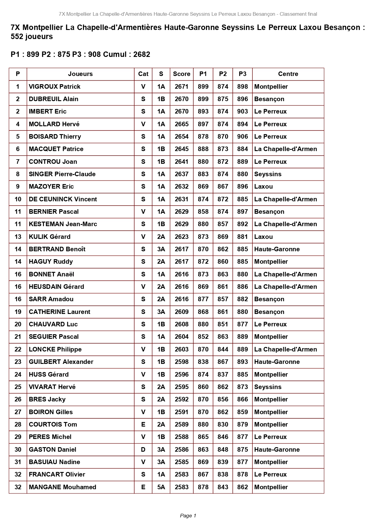 Résultats compilés avec les 6 autres centres en multiplex : BRAVO à Patrick vainqueur sur 552 joueurs