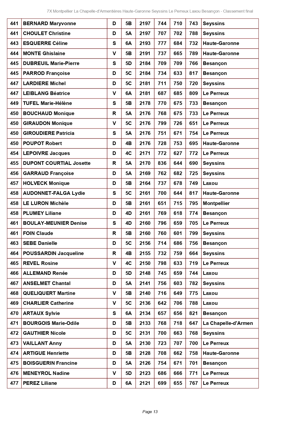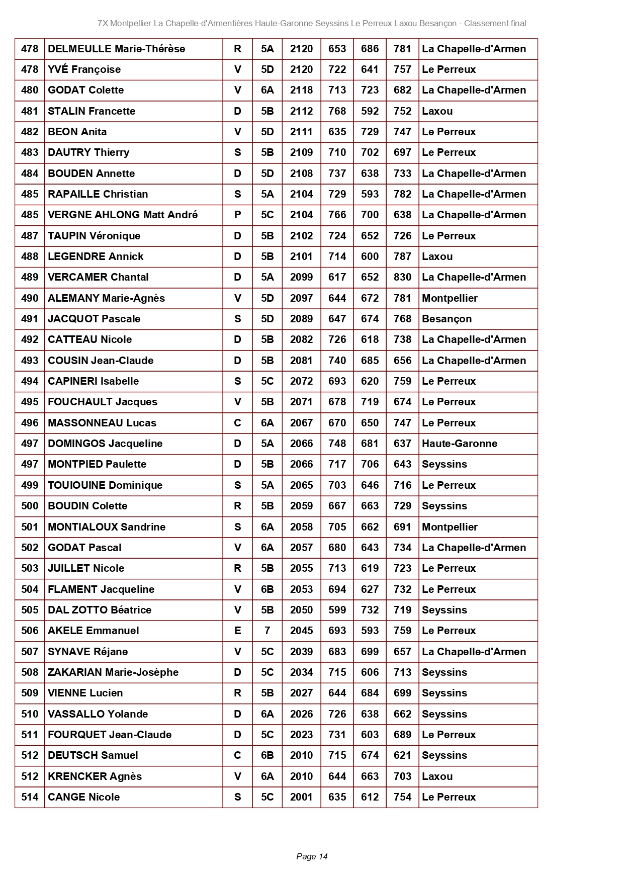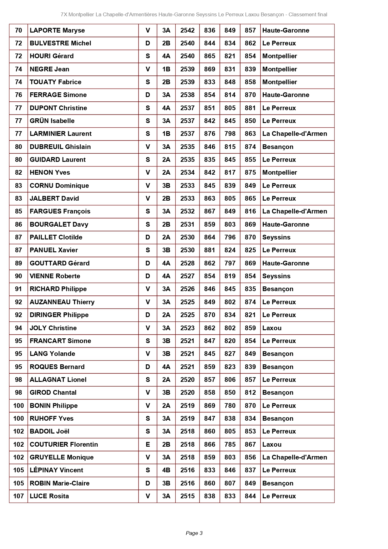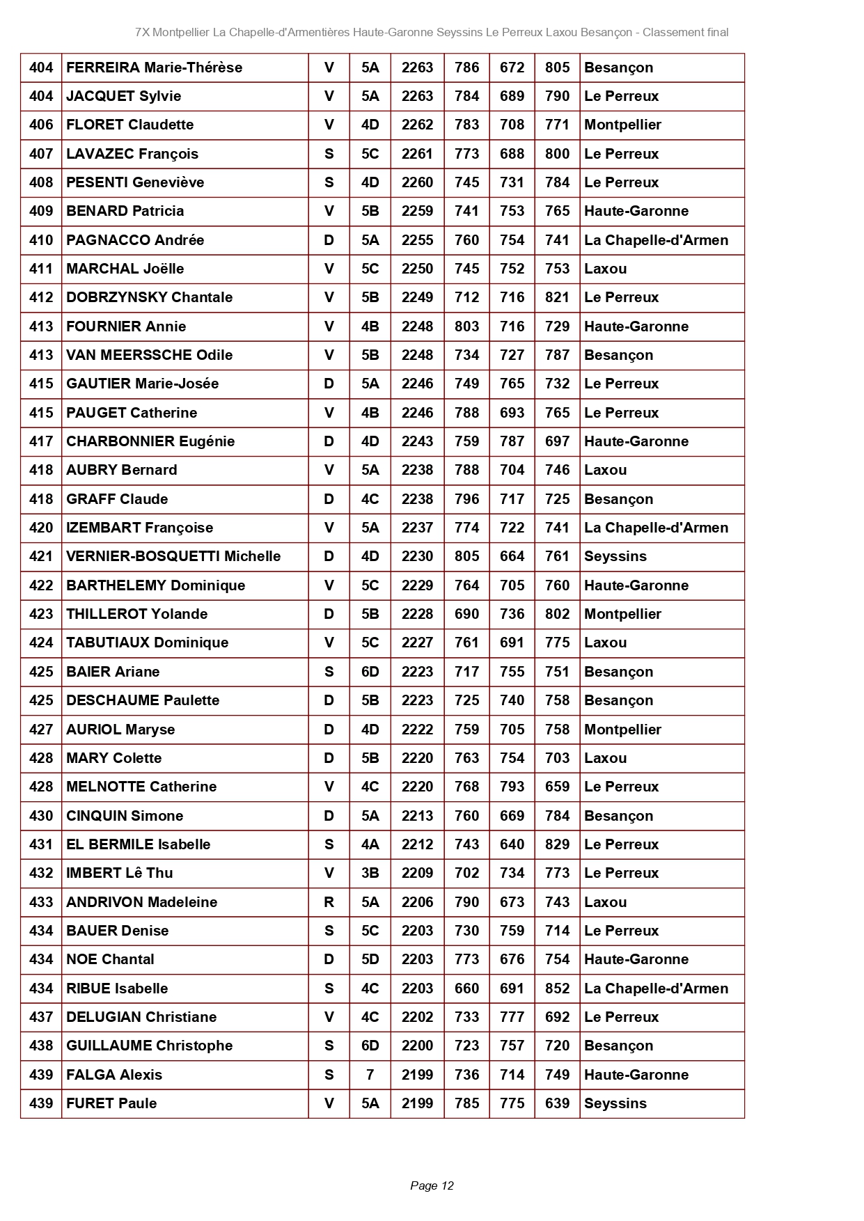 Résultats compilés avec les 6 autres centres en multiplex : BRAVO à Patrick vainqueur sur 552 joueurs