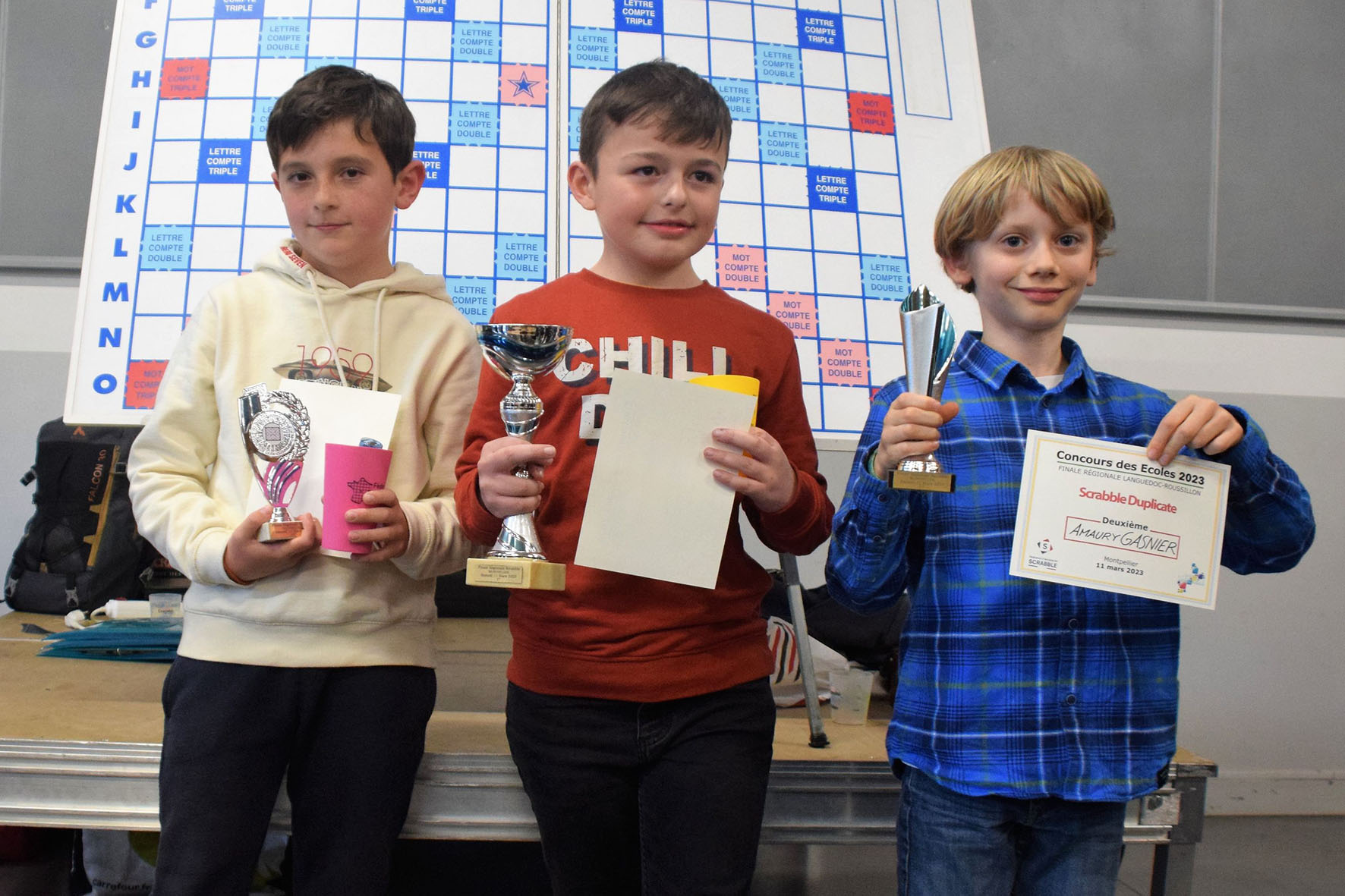 Les trois premiers, Axel, Amaury et Octave sont en CM1, ils devancent tous les CM2 (photo L. Arnaud)