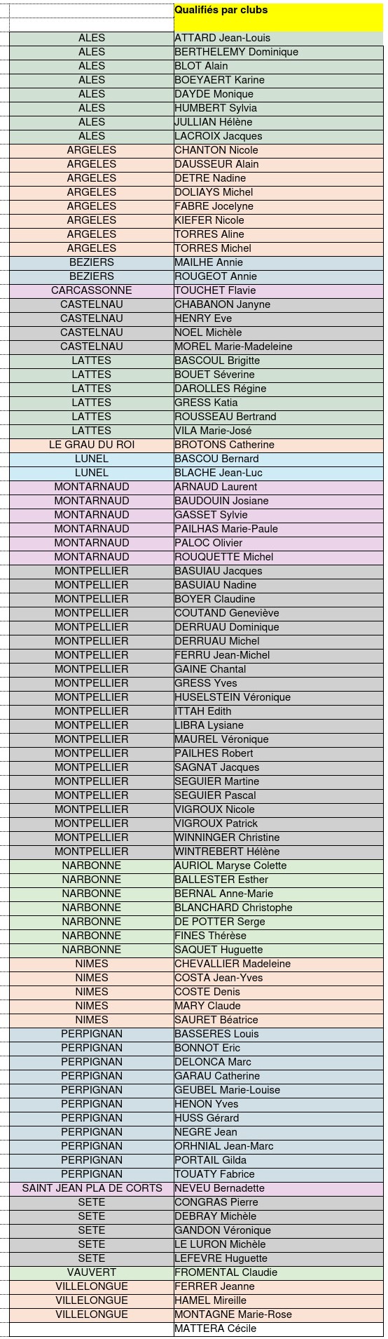 Liste des 92 joueurs qualifiés, classés par club :