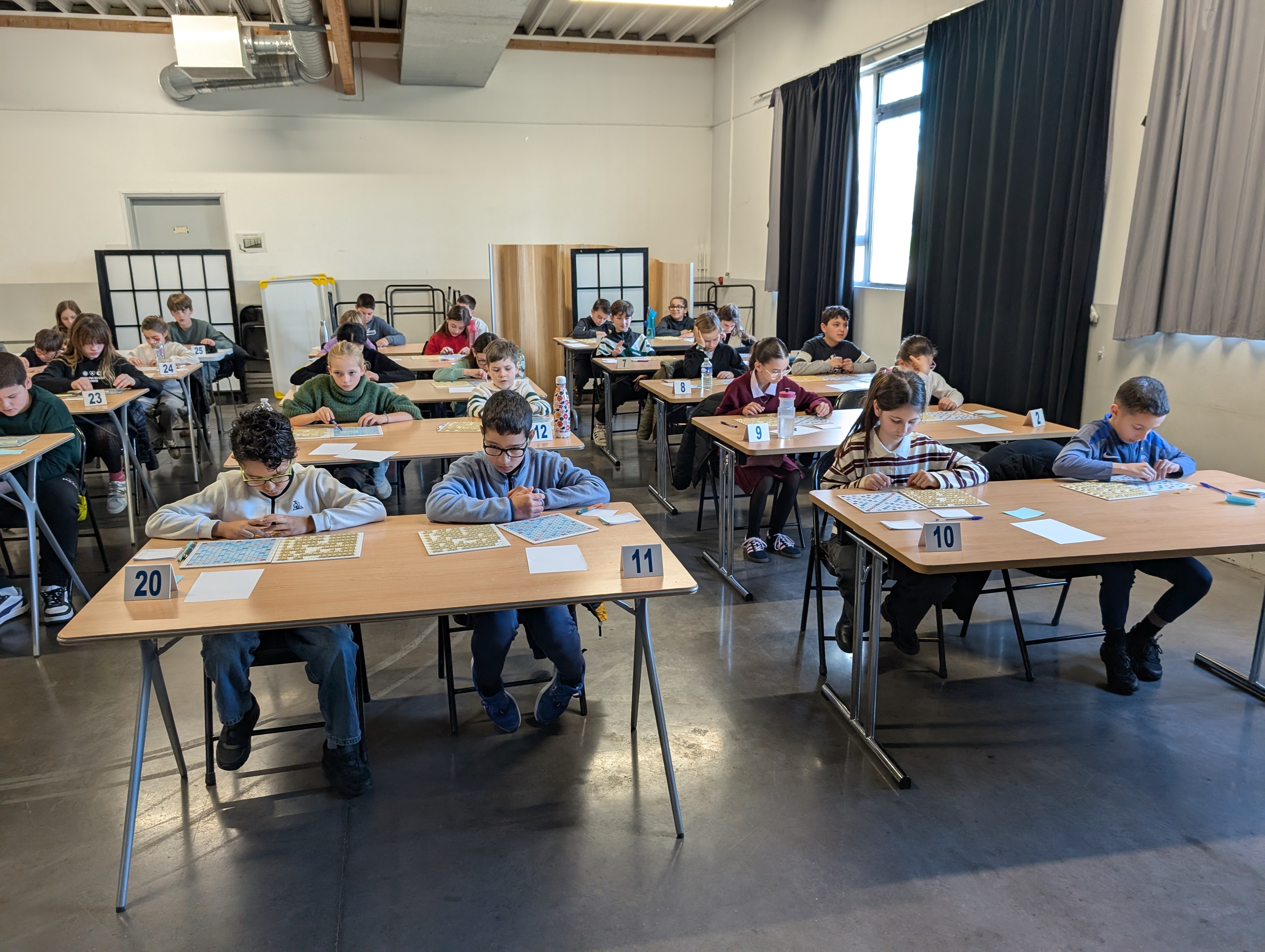 A Montpellier ce sont 50 élèves du Gard, de l' Hérault et des Pyrénées orientales qui se sont retrouvés en compagnie de leurs parents et de nombreux enseignants. L'équipe organisatrice (Montpellier, Montarnaud) a été très bien bien soutenue par Frédéric CARDONA, le délégué régional et Cathy venus des PO ainsi que de Michel Bertucci de la Grande Motte. L'après-midi s'est passée au mieux et les élèves étaient ravis de partager un bon goûter après deux parties intenses puis d'écouter le palmarès en grignotant des bonbons et en appréciant les cadeaux donnés par la fédé ainsi qu'un diplôme remis à chacun. Les parents étaient ravis et leurs retours font chaud au coeur ! Vive le scrabble scolaire et bon vent aux 5 représentants du comité pour Paris !!