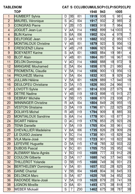 Voici les résultats compilés des 4 sites (Alès Montpellier Nîmes et Prades) pour le TH2 scolaire du samedi 1er juin