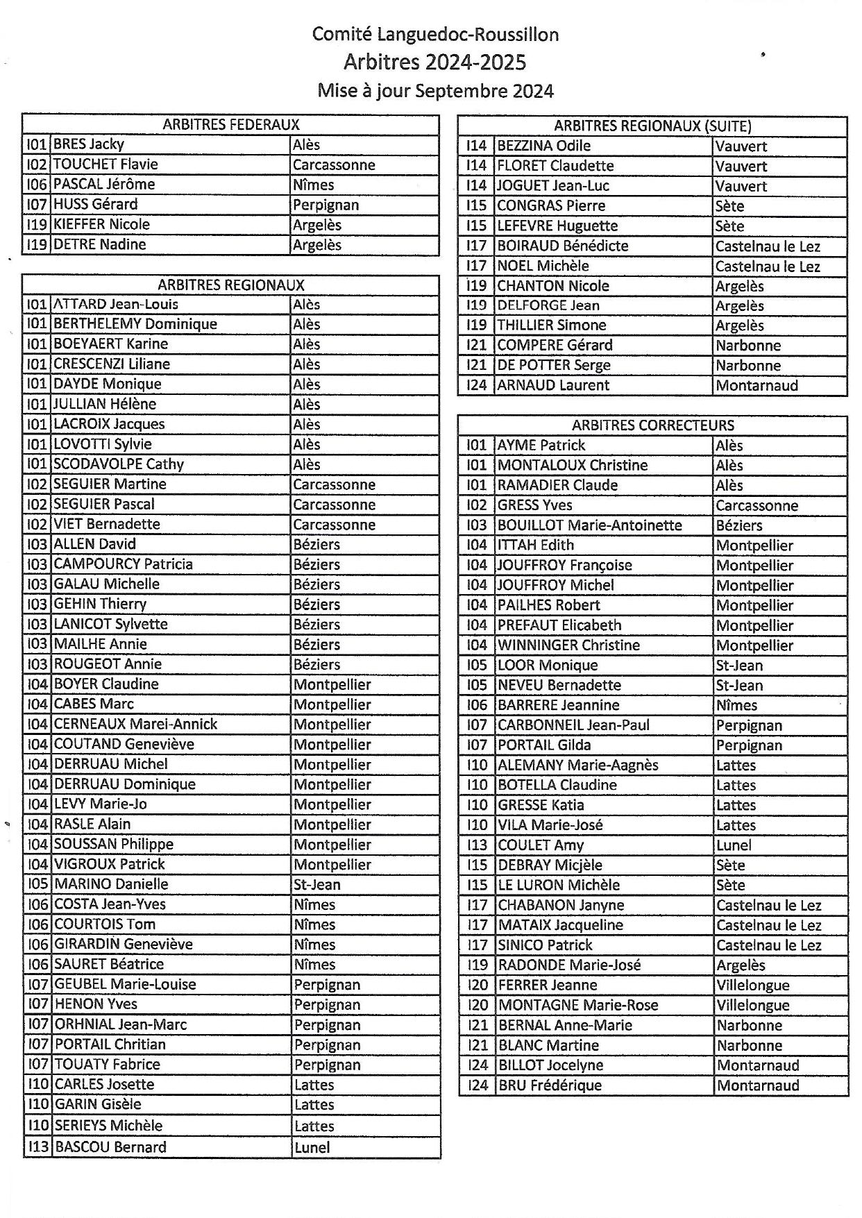 Liste des arbitres du comité (au 01 septembre 2024) -
