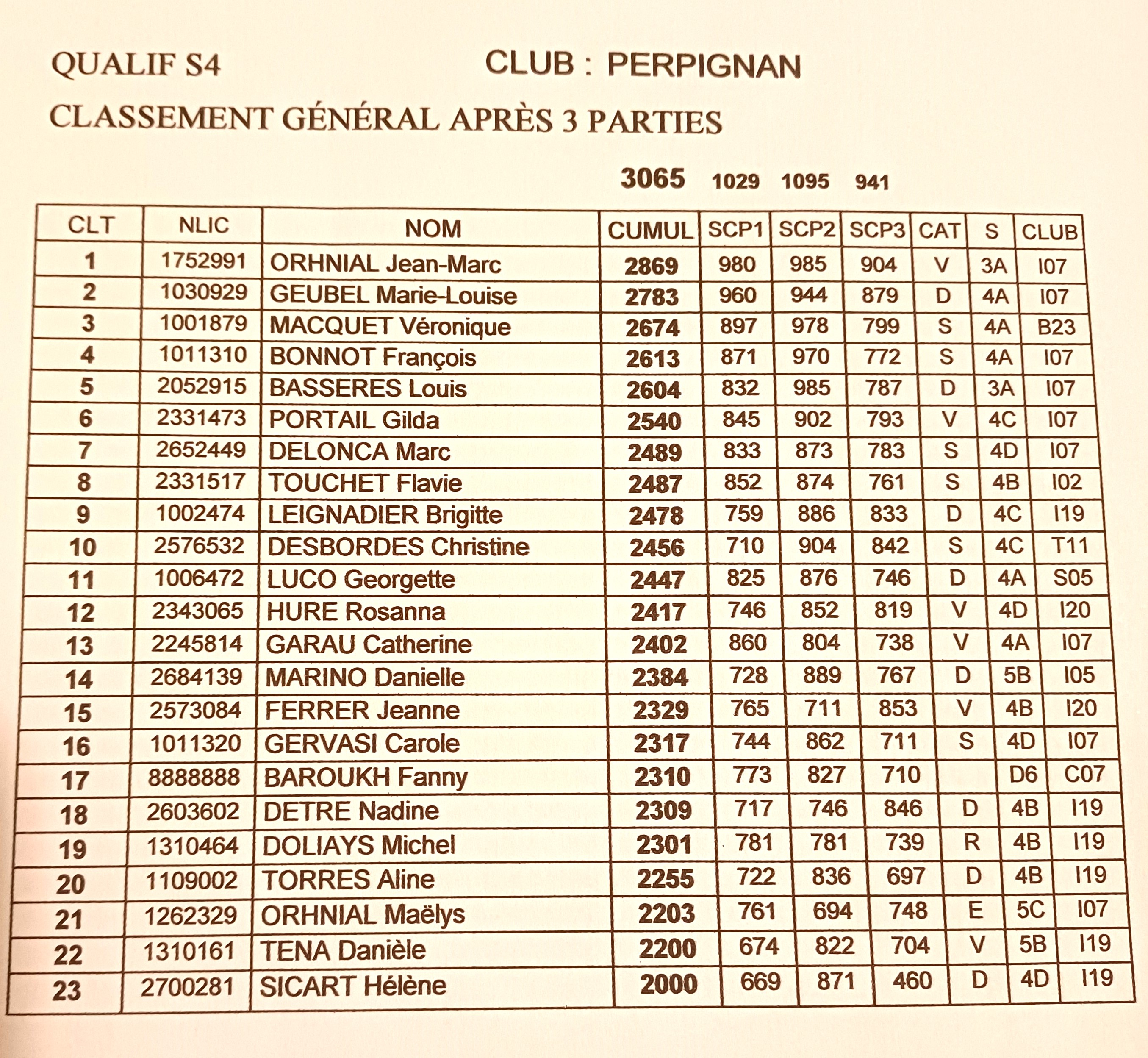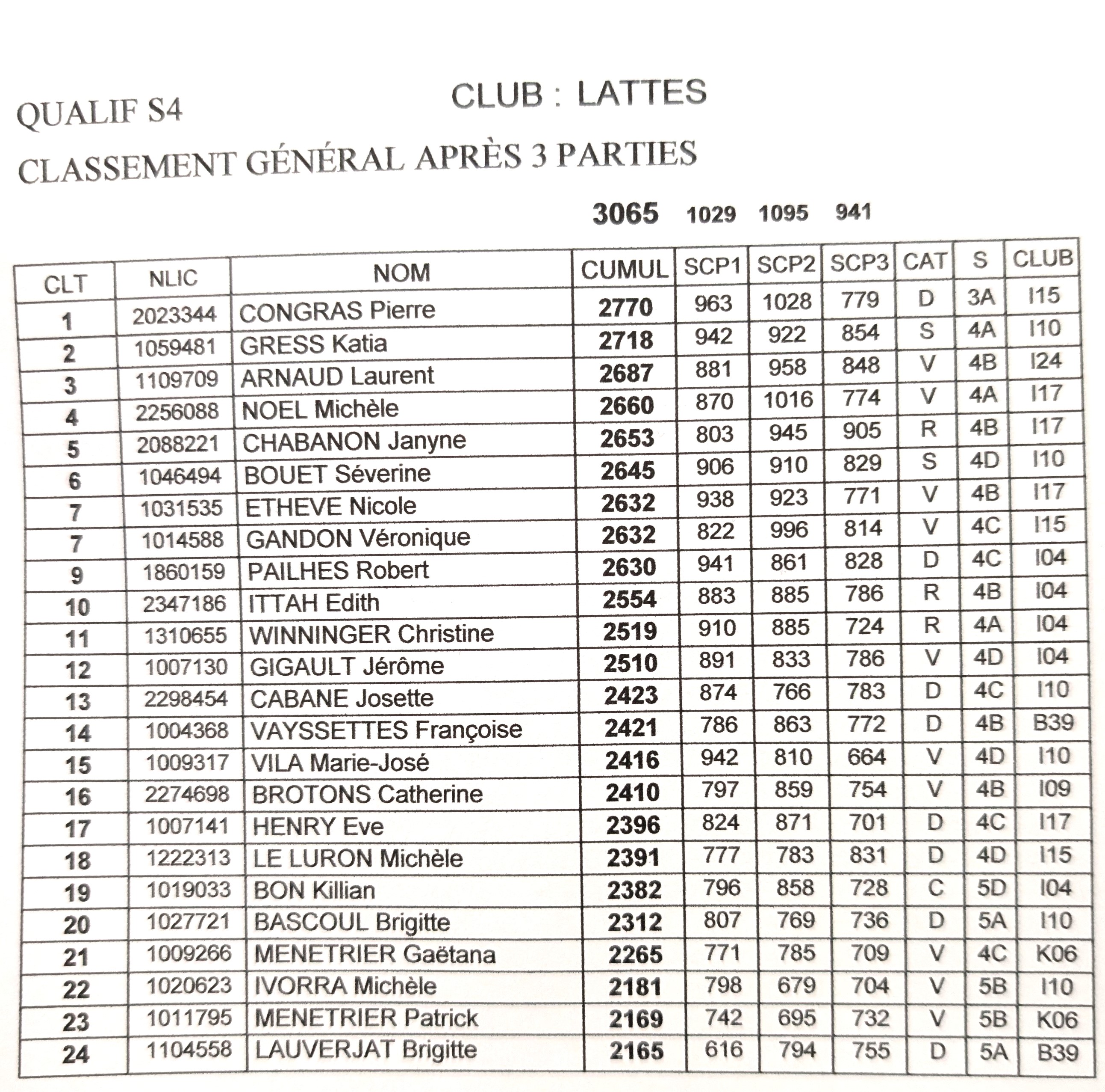 Voici les résultats des qualifications 4ème série du dimanche 12 octobre