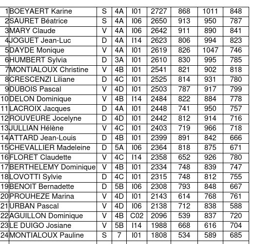 Pour l'ensemble des résultats cliquez ici le lien sur le site de la Fédé :