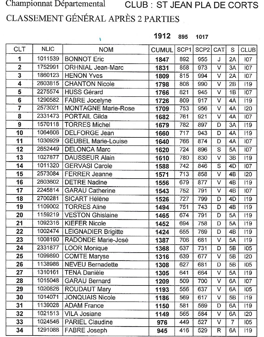 Voici les résultats du Championnat Départemental 66 qui a eu lieu samedi 28 mars à St Jean Pla de Corts. 34 joueurs venant de 4 clubs différents.