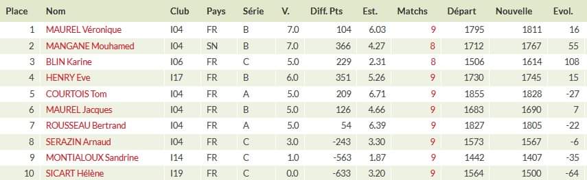 Résultats compilés avec les 6 autres centres en multiplex : BRAVO à Patrick vainqueur sur 552 joueurs